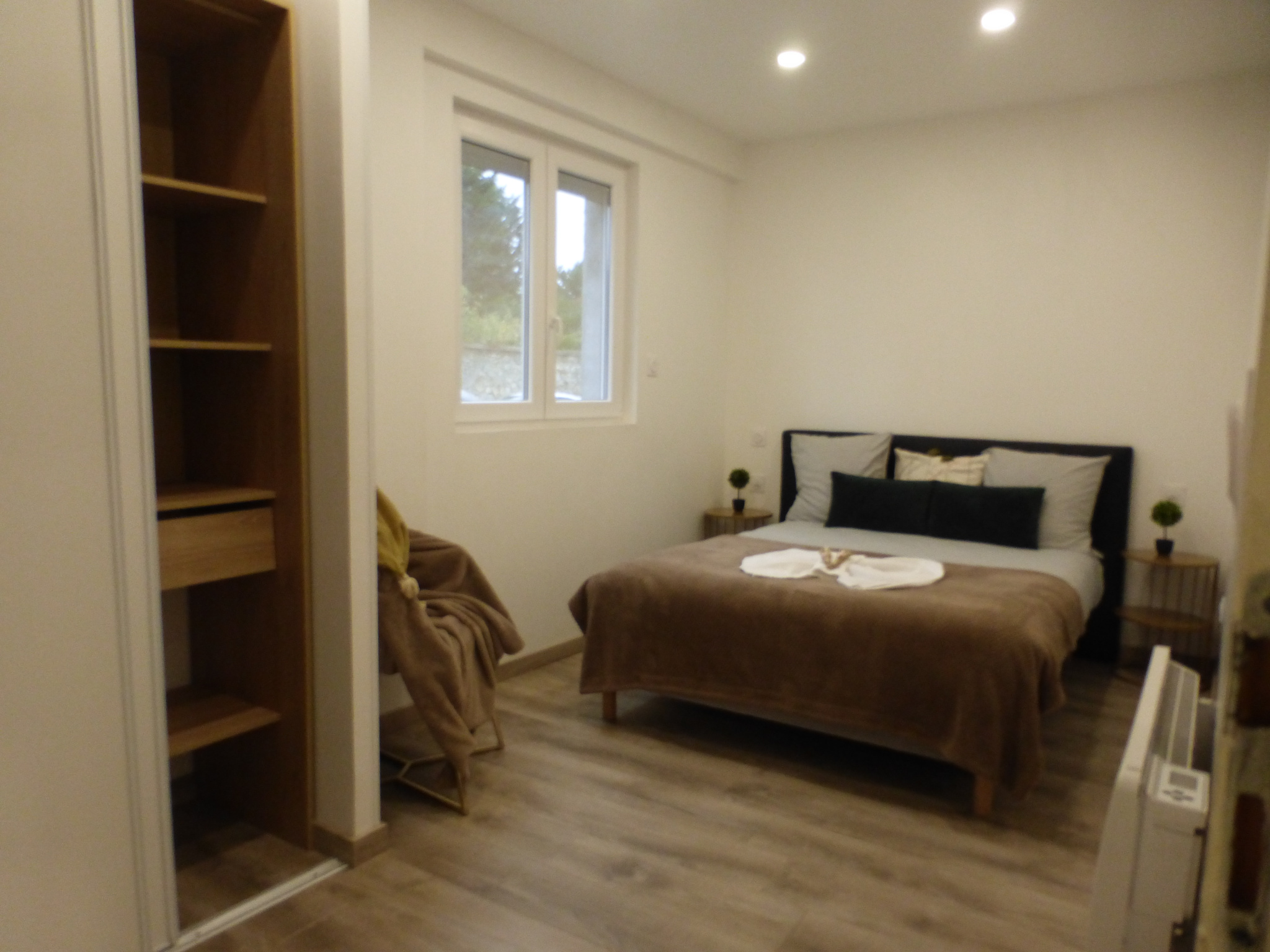 MAISON DE PLAIN PIEDS AUX BELLES PRESTATIONS COMPRENANT ENTREE, DANS SEJOUR OUVERT SUR CUISINE EQUIPEE, 2 CHAMBRES, BELLE SALLE D'EAU AVEC COIN LINGERIE, TERRAIN CLOS DE MURS DE 200 M² ENVIRON, PORTAIL ELECTRIQUE, PRODUIT RARE A VOIR VITE